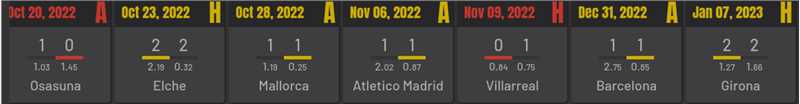 They have won twice in last 7 games, but more importantly thay have been the better side only in the home win over Mallorca. And to be quite honest the schedule could not have been much easier than this. They were outplayed at home by Cadiz, away at Elche!