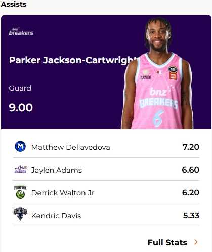 新西兰破坏者的帕克·杰克逊-卡特赖特已经连续11场比赛得到至少15分,这是联盟中最长的场次纪录(11场)。他目前还是联盟第一号助攻王,场均9.0次。