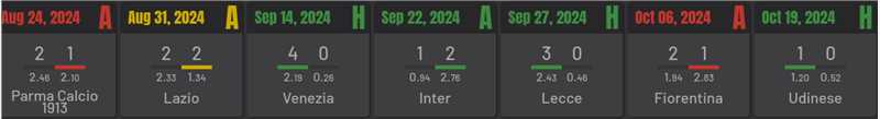 AC Milan - "Rossoneri" - latest 7 games with xG-numbers: